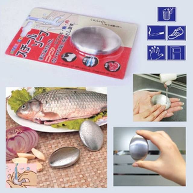 Magic stainless steel soap-Sabun unik dan ajaib penghilang bau tidak sedap!!---membantu menghilangkan bau tidak sedap di tangan anda, spt bau bawang, ikan, daging ataupun yang lainnya---Cara kerjanya:Dipoles stainless steel , rilis besi ion dengan bau molekul untuk menghapus atau menghilangkan bau tidak sedap seperti bau bawang sehabis mengiris bawang, bau daging, bau udang, BAU ROKOK ditangan, dllPenggunaan:Gosokkan ke tangan Anda sambil dialiri dengan air mengalir untuk 30-60 detik. Menghapus semua jenis bau khas, tanpa dete