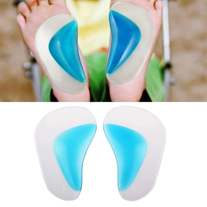 "Features:100% brand new and high quality!This insole will provide you with comfort as you walk, run and play.Arch support for flat feet is important to prevent injury and reduce stress as well as reducing foot pain.They are also a corrective tool for splayed feet.The main insole is clear, while the arch support cushion is blue.High quality material, it is soft and comfortable.Ideal for any type of activity sports or daily use.Specifications:Material: Silicone Color: Transparent & BlueSize: Approx. 8.5 x 4.5 cmNet Weight: Approx. 17gPackage includes:1 Arch Insoles ( 1 bua
