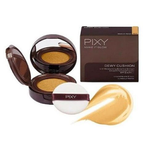 Pixy Make It Glow - Dewy Cushion merupakan base makeup yang memiliki formula cair dan dipadukan dengan sponge khusus untuk menciptakan makeup yang memiliki daya tutup tinggi namun tetap terasa ringan saat digunakan. Kandungan Olive Oil, Jojoba Oil, dan Yuzu ekstrak berfungsi sebagai pelembab sekaligus dapat mencerahkan wajah. Memberikan hasil makeup yang glowy secara maksimal tanpa membuat kulit wajah terasa berminyak. Mengandung SPF 23 & PA++.100% Original Ada Izin Resmi